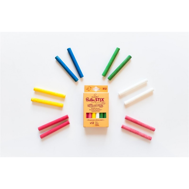 Tizas sin polvo Zero Dust ™ ButterStix ™ (patentadas). 12 colores
